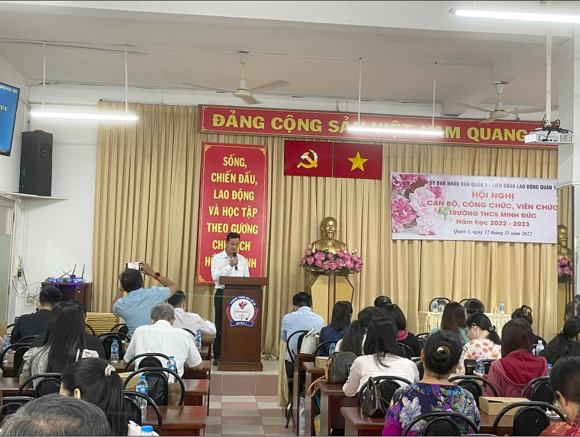 Sáng 12/11/2022 trường THCS Minh Đức long trọng tổ chức "Hội nghị cán bộ, công chức, viên chức năm học 2022-2023".