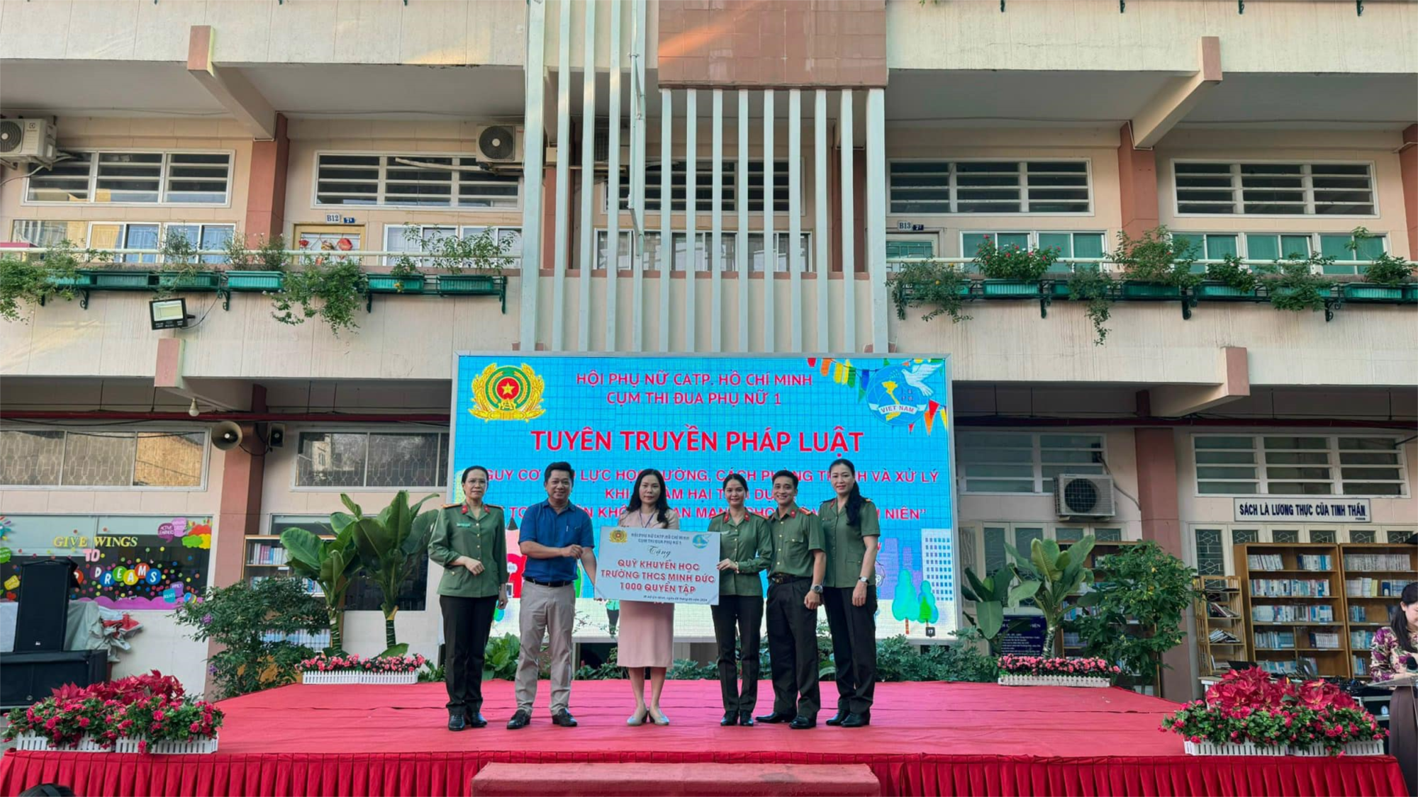 Cũng trong dịp này, Hội Khuyến học nhà trường vui mừng đón nhận phần quà 1.000 cuốn tập do Hội phụ nữ Công An Thành phố Hồ Chí Minh trao tặng.📕📗📘